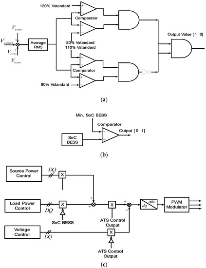 Automatic transfer switches: (a) Series inverter; (b) BESS; (c) shunt inverter.