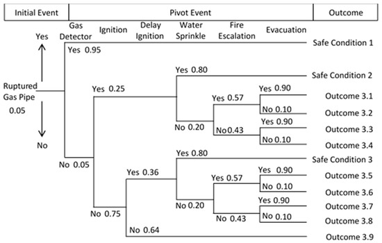Event tree diagram for the gas pipeline rupture scenario.