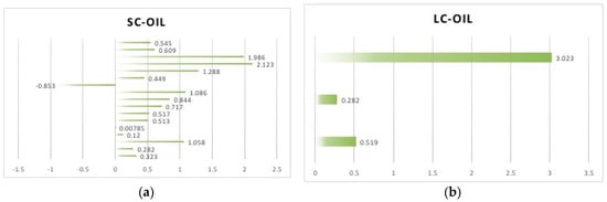 (a) Describes the Short-Run Cross-Price Elasticity-Oil to Natural Gas (SC-Oil); (b) Describes the Long-Run Cross-Price Elasticity-Oil to Natural Gas (LC-Oil).