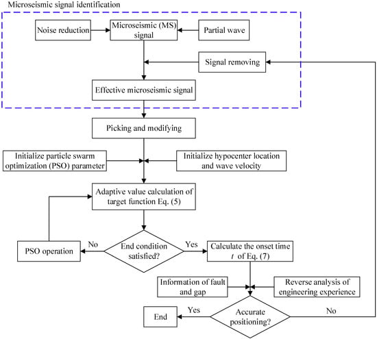 The PSO algorithm is used to search for the MS source location in this paper due to its simple operation and easiness of solving the global optimal solution for multi-level nonlinear problems. The solving process of the MS source hierarchical location based on the PSO algorithm is shown in Figure 2 [].