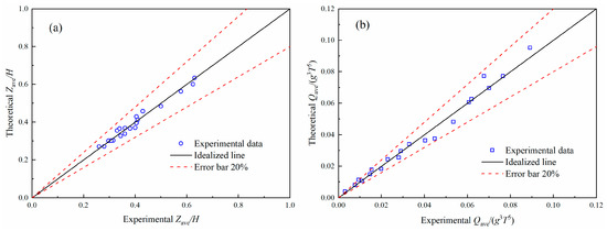 Validation of (a) Zave/H and (b) Qave/g3T5 equations with experimental data.