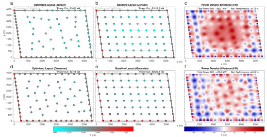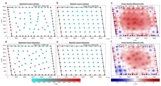 The implemented evolutionary algorithms are designed to optimize a cost function throughout a series of iterations [69]. Here, such optimization consists of maximizing the overall power output in the wind farm. is measured for each individual in each generation by means of the wake model being applied. For each of the wind speeds in the wind rose, the wake model is implemented, and then the overall power output is aggregated by weighting each power value with the corresponding frequency of each wind speed.