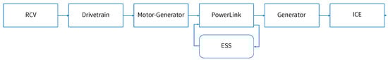 The powertrain of the proposed – is of the series type configuration, as shown in Figure 1. It consists of one internal combustion engine, two electrical machines and the energy storage system.
