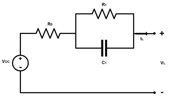 Several models have been proposed with the intention of reproducing the real electrical behaviour of a battery-based [42]. The proposed is composed of a number of cells connected in series and parallel, in order to provide the required voltage and current. Each cell may be approximated with a first order electrical model, as shown in Figure 3 [43,44,45].
