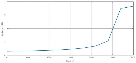 The parameters , and are determined by using the , and for an hour according to 1C discharge rate, as shown in Figure 10, Figure 11 and Figure 12, respectively.
