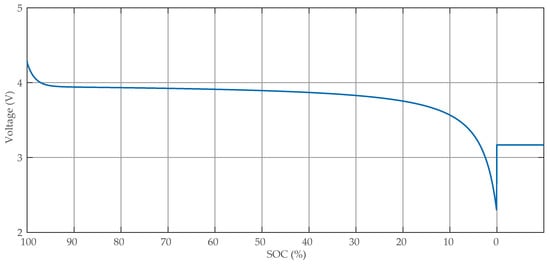 A Li-Po 3.7 V cell is characterised experimentally in order to set the parameters of the model described in Section 3. The state of charge is determined as shown in Figure 9.
