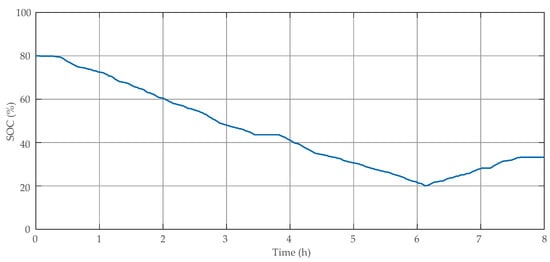 The minimum of 20% and a maximum of 100% for the energy storage system is considered [34,35], in order to formulate a rule-based control strategy (11):