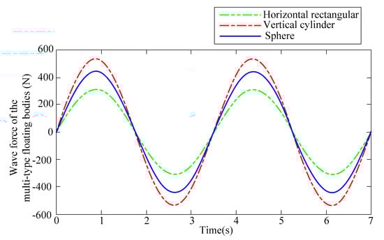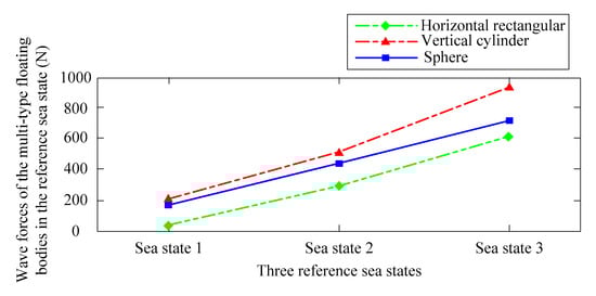 The wave forces of the multi-type floating bodies in the reference sea state.