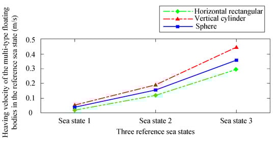The heaving velocity of the multi-type floating bodies in the reference sea state.
