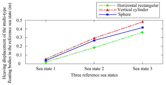 The heaving displacement of the multi-type floating bodies in the reference sea state.