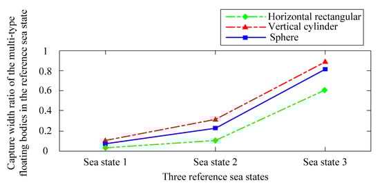 The capture width ratio of the multi-type floating bodies in the reference sea state.