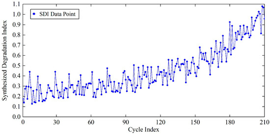 The constructed synthesized degradation index (SDI) series based on the multi-dimensional sensor data.