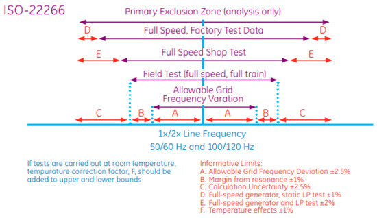 ISO Standard ISO-22266 [2] addresses T/G interface to the grid. For various cases, specific torsional frequency margin values are listed for information and guidance. Figure 5 is a summary of the torsional natural frequency exclusion zones, as specified by ISO.