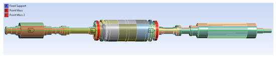 A simplified rotor system is shown in Figure 3. Frictionless supports and free-free boundary conditions are assumed. The method using Newton’s second law of motion, with the help of the free body diagram in Figure 4 may be used to analyze a three DOF (or more) rotor system [26].