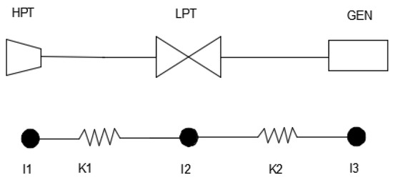 In the lumped mass approach, the mass moment of inertia of the rotating assemblage is segmented and lumped at stations that are then connected by massless springs. For example, using this approach, lumped masses along the T/G shaftline (e.g., HPT, LPT, and generator rotor) can each be represented by a single station, with stations then connected by massless springs. The solution of the lumped mass approach can be obtained by various means (e.g., the TMM or the DSM) [7]. The DSM is described as follows.