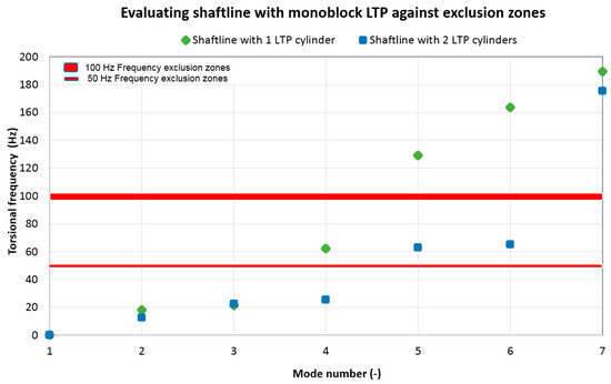 In the design stage, if torsional analysis indicates results that require the shaftline to be re-designed (i.e., to move the torsional mode outside of the exclusion zone), this can be routinely accomplished by geometry considerations of mass distribution, or minor shaft diameter and length changes.