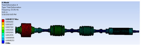 The eigenvalue and eigenvector of the matrix [D] can be obtained conveniently by hand calculations for a matrix size up to 3 × 3. However, for the large size matrices for multi-DOF rotor systems, standard Finite Element (FE) software (e.g., ANSYS® [25]) can be used. The square root of the eigenvalues will give the torsional natural frequencies and corresponding mode shapes.