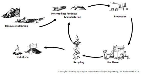 Schematic visualization of the life cycle of a product. Source: University of Stuttgart.