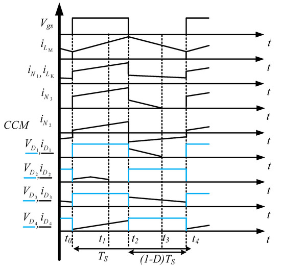 Some typical waveforms of proposed converter at continuous conduction mode (CCM) operation.