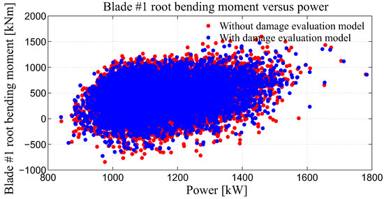 This approach implicitly assumed that the damage between two subsequent load cycles stays constant. As this case rarely occurs in practice, the development of additional fatigue damage evaluation models can be investigated in the future to obtain a more accurate prediction of RUL. Besides the development of improved fatigue damage accumulation models, further improvements are still possible concerning the control strategy. These improvements may lead to an investigation of the possibilities to consider the mitigation of other structural loads of WT along with rotor blade structural loads, such as top-tower fore-aft and top-tower side-to-side tower structural loads.