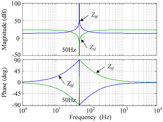 The Bode diagrams of parallel virtual impedance Zpj and series virtual impedance Zsj.