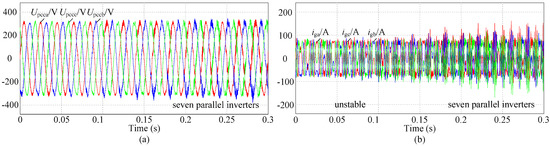 To verify the correctness of theoretical analysis, the simulation model of a paralleled multi-inverter system was built based on Figure 1. Several cases including two and seven inverters were simulated by PSIM (Powersim Inc., Rockville, MD, USA) simulation. The system parameters are shown in Table 2.
