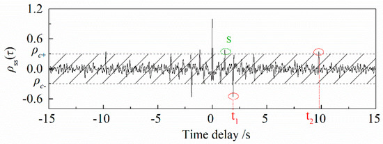 which means that ρss(τ) will reach the peak value if s(t) and s(t + τ) are correlated. Theoretically, the leakage acoustic signals generated at the same position and time are strongly correlated, whereas those generated at different positions or different times lack correlation. Therefore, the characteristic time can be obtained through autocorrelation analysis of de-noised signals.