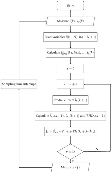 - Select the optimal corresponding to the minimum cost J, then send the switching signals to inverters and return to Step 2.