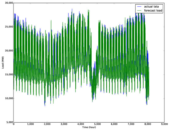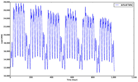 In the experiment, the electric load dataset in the Italy-North Area provided by entsoe Transparency Platform was used. The period of the particular dataset used in this paper is from 1 January 2015 to 31 December 2017. The data sampling was one hour. The electrical dataset contains a total of 26,304 samples. In this study, the load data for first two years were chosen as the training set. The test data were collected in 2017. An example of the test dataset is shown in Figure 5.