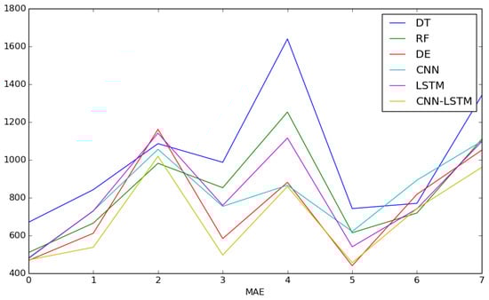 The comparison of the MAE in the six models.