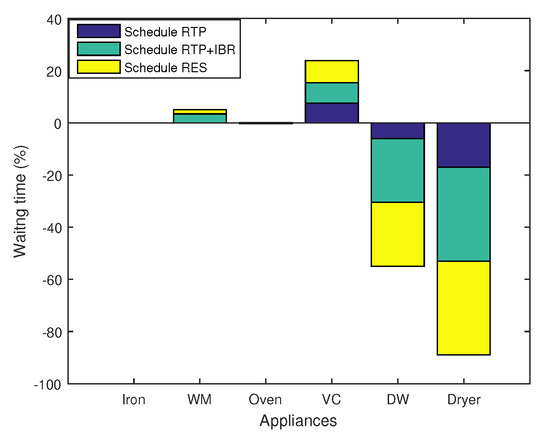As discussed in Section 4.1, an RTP is more effective as compared to TOU and CPP for different appliances’ operation. Therefore, RTP gives much adaptability when combined with IBR. In any case, it is highly desirable to focus on real-time constraints of appliances working at a relatively low peak hour. Therefore, using the proposed model that is comprised of RTP and IBR would provide different price variations depending on load consumed.