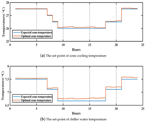 where , and represent the set-point of chiller water, zone air temperature and lighting level, respectively. The constraints of these three controllable variables during the optimization process are set to 6–12 °C, 22–29 °C and [0.5,1], respectively.