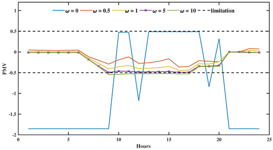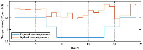 It is notable that thermal comfort should not be violated excepted for small fluctuations during the load reduction. The thermal comfort was also considered as an objective function in some articles [26,27,28]. Grygierek et al. [26] proposed a multi-objective optimization to achieve the optimal selection of the envelope for a single-family building. The heat demand and thermal comfort of occupants have been studied in the objective function. Ascione et al. [27] developed a novel cost-optimal analysis framework to select the robust and optimal retrofit packages. The energy consumption and thermal discomfort were minimized by multi-objective optimization and artificial neural networks. In [28], a fuzzy logic controller was proposed by Grygierek and Ferdyn-Grygierek. The paper exploited the modified Multiobjective Evolutionary Algorithm to limit a temperature from being too high in residential buildings. In addition, passive cooling was adopted by virtue of ventilation with ambient cool air. For the authors in [17], using Predicted Mean Vote (PMV), the thermal comfort index was used in the optimization framework and tried close to zero.