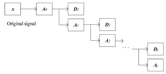 - Repeating step (2) can obtain a series of detail components at each level, so multi-resolution decomposition is achieved. Finally, A0 in Equation (4) is decomposed as