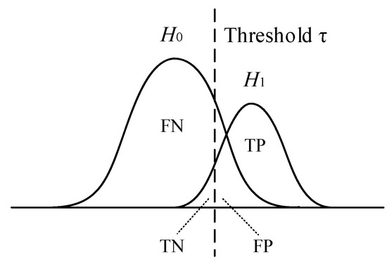 The probability density functions (PDFs) of these two hypotheses are shown in Figure 5, where the threshold plays an important role. To evaluate the its impact on segmentation, several definitions are introduced in Table 1.