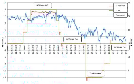- power factor regulation (setup point change from 0.9 p.u. lagging to 0.9 p.u. leading in steps of 0.05 p.u.);