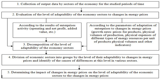Figure 2 presents the sequence of the process of assessing adaptability of the economy to changes in prices for energy carriers.