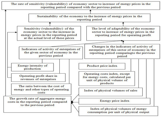 Let us consider now in more detail the case when energy prices tend to increase, and enterprises of a certain sector of the economy act as consumers of these energy carriers. Under such conditions, the sensitivity of the economic sector to changes in energy prices can be identified with the vulnerability of the enterprises of this economic sector to these changes. In this case, the indicator (10) can be applied as follows: