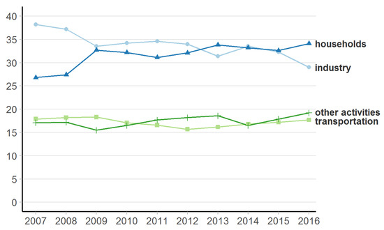 With regard to the sensitivity of a particular economy sector to the change in energy prices, the relative level of this sensitivity can be estimated by the expected share of the change in operating profit. At the same time, we assume that there is no effect of adaptation of the enterprises of the economy sector to changes in energy prices. The relative sensitivity level of a particular economy sector to the change in energy prices will be directly proportional to the magnitude of such a change: