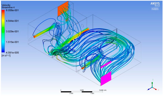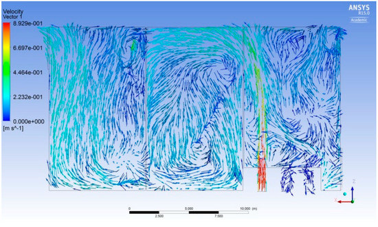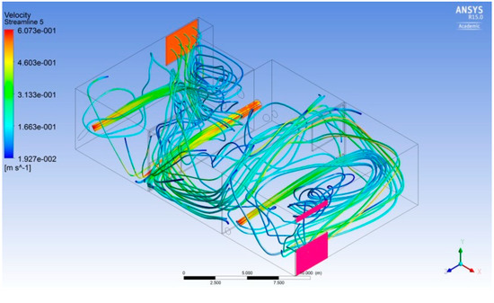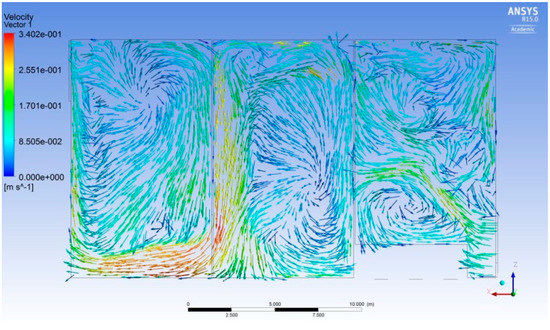 Further illustrated from Figure 6 and Figure 7, are the influence of the openings into each zone and the creation of vortices. The vortices are a result of regions of low velocity, shearing with the higher velocity flows entering from the zone’s inlet [22].