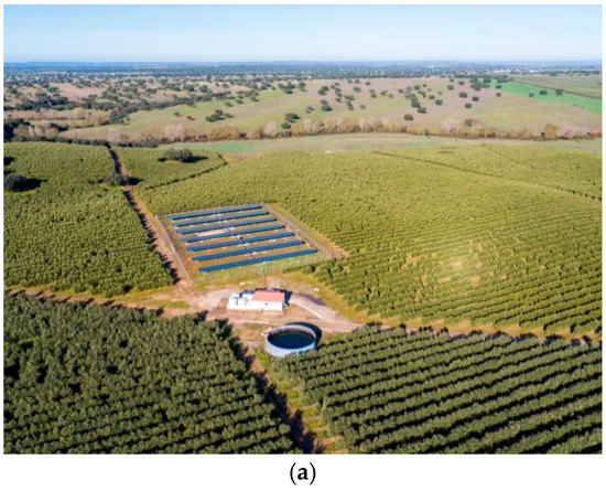 The main novelty of this paper is that we have developed solutions for these two technical barriers and have applied them to the design and implementation of a large-power hybrid PV-diesel irrigation system that has been analysed during two years of operation in the framework of a European project [36]. Instabilities due to PV power intermittences have been addressed by specific control algorithms without the need of batteries [37], and the match between PV production and water needs for irrigation has been solved by using one-horizontal axis trackers. To ensure economic feasibility, batteries have been disregarded [38]. These new solutions have allowed an increase of the range of powers to the ones that satisfy the irrigation needs of farmers, co-operatives, irrigator communities, and agro-industries. In fact, the hybrid PV-diesel irrigation system presented in this paper has a 140 kWp PV generator, which was the power required for the drip irrigation of 195 ha of olive trees in Alter do Chão (Portugal) belonging to the company ELAIA, which is part of the Sovena Group, one of the biggest producers of olive oil in the world.