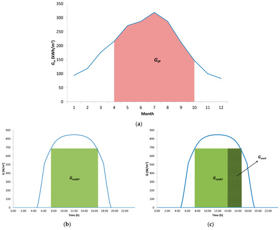 Furthermore, a third novelty is that, apart from the technical quality of the components, the performance of the PV system is not only affected by intrinsic-to-design characteristics (for example, pumping at a given head requires the irradiance to be higher than a certain threshold, which implies corresponding irradiation losses), but also by circumstances external to the system. In fact, the PV system only works when water is both available at the source and required by the plants [40]. The corresponding useful period (and, again, corresponding irradiation losses) substantially varies from case to case and from year to year. Therefore, to evaluate the performance of PV irrigation systems and, in particular, the performance of the system presented, new performance indices for distinguishing between the PV system quality and PV system use have been developed.