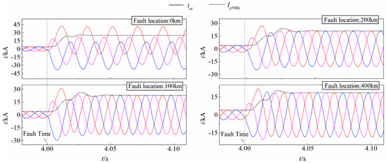 The comparison of the calculated AC currents and simulated ones showed that the calculation errors of the fundamental current by the proposed approach were within 10%. The 10% error was acceptable, as the same level of measurement errors of the current transformer (CT) applied in protection measurements are regarded as acceptable in protection setting calculations [27]. To avoid relay overtripping or failure, the sensitivity factor could be modified according to the error level.