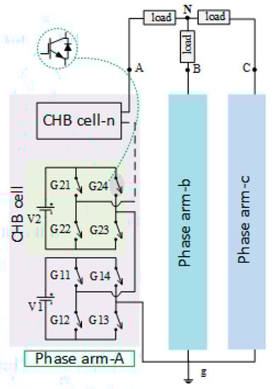 The number of CHB cells in the cascaded stage can be increased in order to achieve more levels in the output voltage waveform. Each H-bridge cell (k) comprises four switches (