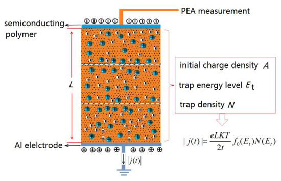 Equation (6) presents that the trap density N(Et) at trap energy level Et could be calculated as long as the values of A and τ being obtained by analysis the charge detrapping behavior measured by PEA equipment, as shown in Figure 6.