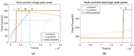 The peak power in single-designed power, current, SOC, and voltage constraints has been discussed above. In this section, the peak power under multiple constraints of current, voltage, SOC, and power will be discussed.