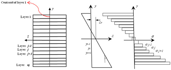 where is the area of a surface element in the initial state. Thus, in order to calculate the value δR2, the integration should be carried out over the surface in the unstrained state. The key parameters can be also calculated based on the Euler-Bernoulli beam model Ranzi and Gilbert [14]. An analytical method is developed to evaluate shear stress and strain distributions between the engaged surfaces throughout different joint layers by considering the beam theory method in different directions with respect to the different planes, where it can independently calculate shear forces between the different layers and shear strain as well as the curvature distribution along the different layers that have been extracted. The main concept to derive the following equations was extracted from Ranzi and Gilbert [14] and Ranzi et al. [15]. According to Ranzi and Gilbert [14], the cross-sectional (Figure 4) analysis is based on the assumption of the Euler-Bernoulli beam model.