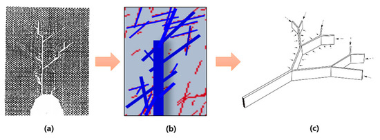 Determined self-similar fractal fracture model by construction theory. (a) represent branching fracture propagation geometry, modified from [23]; (b) represent the fracture representative element volume in Figure 2; (c) is determined Y-shape self-similar fractal fractures [28].