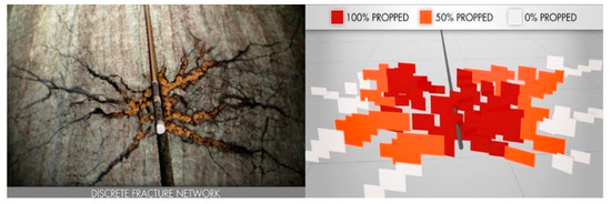 However, with the multi-scale features in particular shale reservoir, the guiding concept has changed from “bi-wing planar fractures” to “complex fracture networks”. To account for the clastic mass after fracturing, Guo et al. [18] conducted several fracture propagation experiments to evaluate the crushability, Figure 2. Al-Obaidy et al. [19] proposed “branched fractal” models that describe the pressure depletion in gas condensate shale reservoirs, and their results show that the fractal models allow for using more realistic shale permeability and improve the match for the observed trend. To capture part of the complexity of the fracture network, Mhiri et al. [20] introduced a novel approach to model the hydraulic fractures using “random-walk” stochastic method. The geometry of a fracture network is related to the fractal controlling parameters, and the multi-level bifurcated geometry of a fractal fracture better represents fractures of different orders and branches. Fuyong et al. [21,22] investigate fluid flow in fractal porous media and propose simulation method for the permeability of porous media based on the multiple fractal models.