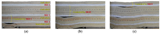 In the research field of underground pressure control, the key strata (KS) theory has been extensively applied and can be verified in practice. First the KS theory will be outlined briefly. Since there is a difference in the character of the layers of coal strata, each rock stratum has a different effect in rock-mass movement. These thick-and-hard strata, called KS could be seen as a control mechanism for rock mass movement; while the soft strata could be seen as the body of the load on the bottom of the thick-and-hard strata (KS). The controlling effect of the KS means that when KS break, the soft strata controlled by the KS break simultaneously, which is the basis of the KS theory proposed by Chinese academic, Qian [24]. The controlling effect of KS can be seen in Figure 9. Based on this, the determination method of the location of the KS in overlying strata is given by Qian, which can be seen in reference [24].